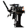 Мотор запускается ручным стартером и управляется стандартным румпелем с поворотной ручкой газа (гашеткой мотоциклетного типа) с антипроскальзывающими насечками.